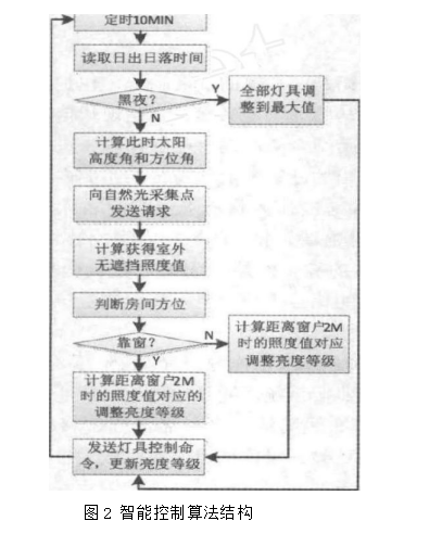 (1)隨著戶外自然光照強(qiáng)度的上升:戶內(nèi)人工照明燈具的亮度將隨之降低,反之,戶外自然光強(qiáng)度下降,戶內(nèi)照明燈具的亮度將升高。(2)根據(jù)太陽位置以及東升西落的特點對不同朝向的窗邊照明的影響,人工室內(nèi)照明要做不同權(quán)重的亮度調(diào)節(jié)。(3)戶內(nèi)人工照明實行梯級調(diào)光,即根據(jù)燈具與較近窗戶的距離不同而采用不同權(quán)重的調(diào)光。目前采用靠窗與不靠窗兩級策略。(4)戶內(nèi)燈具根據(jù)燈具類型分為可調(diào)光和不可調(diào)光兩類,前者實行8級調(diào)光,亮度等級隨自然光照明的變化改變。 不可調(diào)光只有開/關(guān)兩種功能,當(dāng)自然光照明低于某閡值時, 則自動開啟.