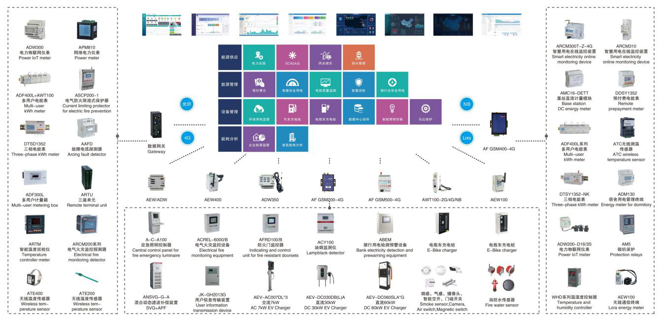 安科瑞根據(jù)多年來的項目經(jīng)驗,結合用戶實際需求,開發(fā)了各類有線、區(qū)域無線、廣域無線通訊產(chǎn)品,包括網(wǎng)關和終端設備。支持RS485、以太網(wǎng)、LORA、ZigBee、GPRS、4G、NB-IOT等多種通訊方式,隨著5G建設步伐的加快,未來將會有越來越多的通訊方式融入產(chǎn)品,服務于泛在電力物聯(lián)網(wǎng)建設。